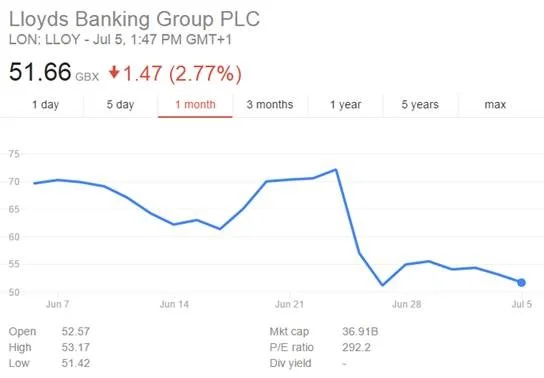 My bellweather stock, Lloyds Banking Group, has drifted downwards from 56.5p towards 50p this week :(